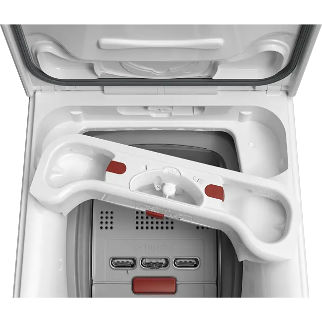 Тази перална машина с горно зареждане е с внимателно проектирана система за отваряне Soft-Opening System, за да можете да достигате вътрешността на барабана безопасно и само с една ръка.