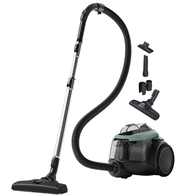 AEG телескопична тръба с блокировка: Дължината на тръбата може да се регулира според Вашия ръст и е лесно да отключите тръбата, за да използвате маркуча с аксесоарите, например при почистване на диваните.