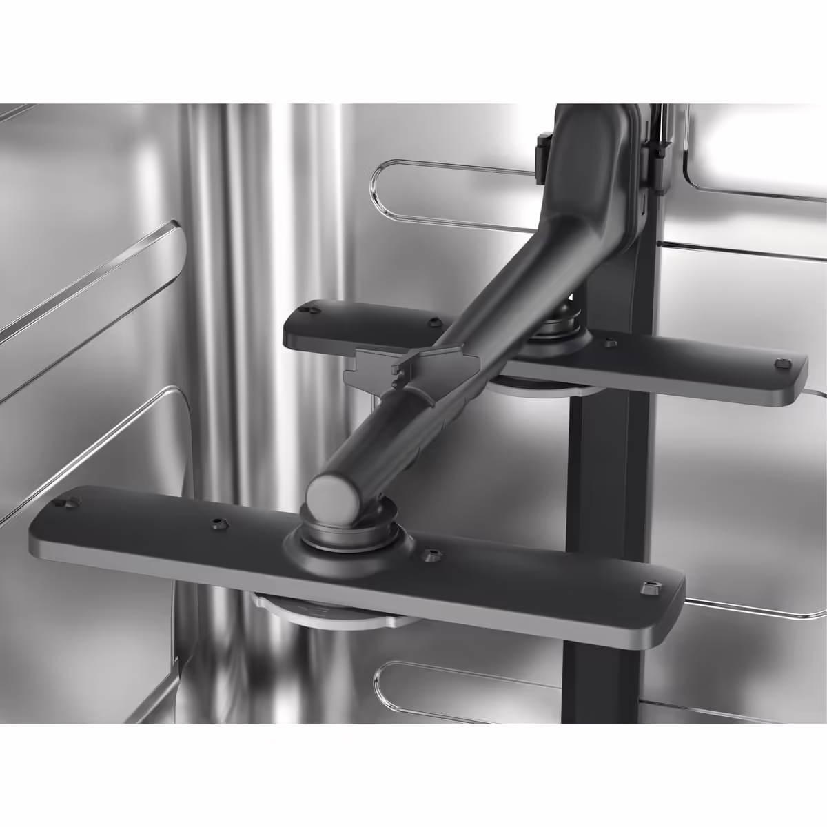 Рамената с двойно разпръскване осигуряват максимално водно покритие. Въртящите се пръскачки изпращат струи вода във всеки ъгъл на горната и долната кошници, постигайки отлични резултати на измиване.