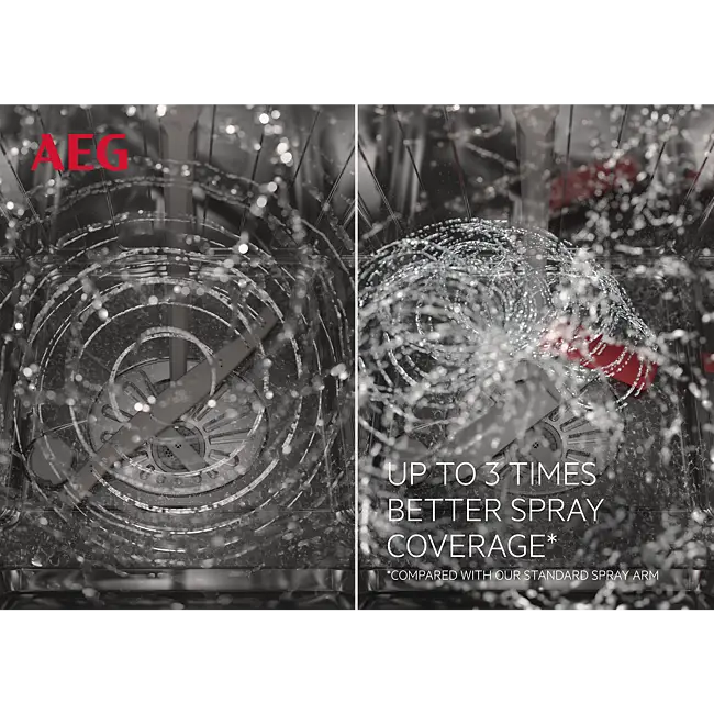 ТЯСНА СЪДОМИЯЛНА 45 СМ. AEG FFB62427ZM ТЕХНОЛОГИЯ AIRDRYДори силно замърсените големи съдове получават почистване от ъгъл до ъгъл със SatelliteClean®. Иновативното разпръскващо рамо гарантира, че водата достига навсякъде. За дълбоко почистване с до три пъти по-добро покритие на струята, то осигурява зашеметяващи резултати на почистване на всяка повърхност.